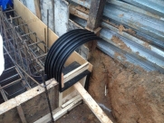 - Перед бетонированием смежного участка очистите открытую часть шпонки и установите заполнитель полости шва (если предусмотрено проектом).