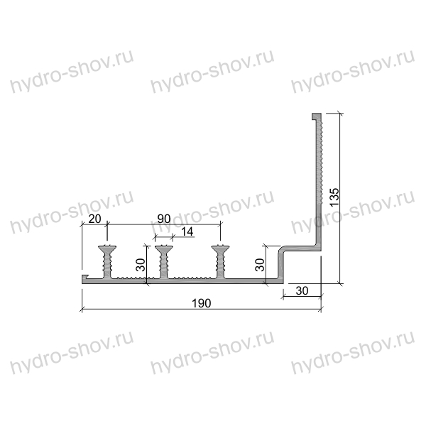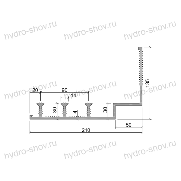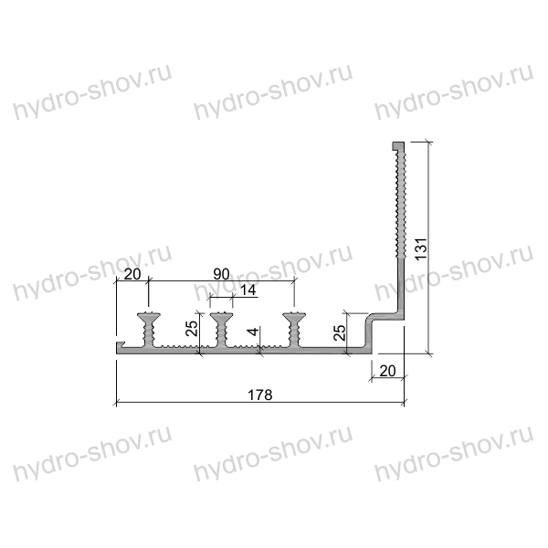- Три анкера высотой 25–30 мм – надежно фиксируют шпонку в теле бетона, исключая смещение при заливке и эксплуатации.