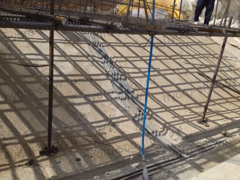 Профиль фиксируют к арматуре до бетонирования, центрируют по оси шва и бетонируют поэтапно.