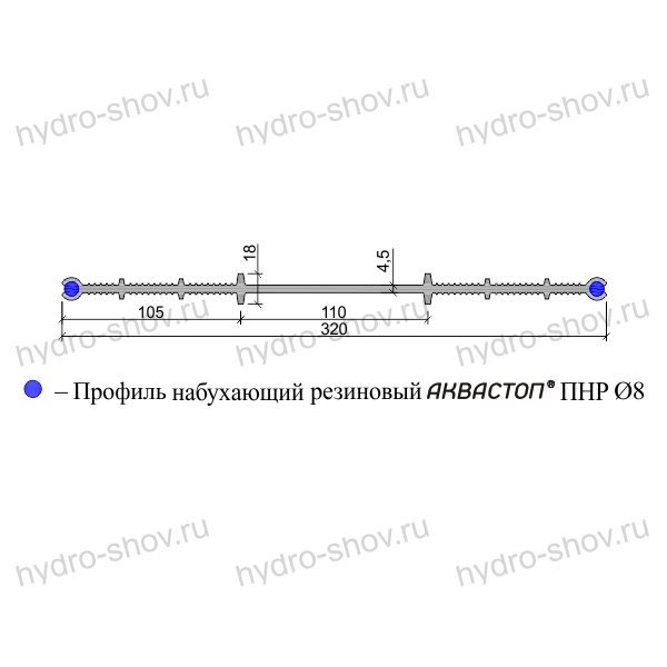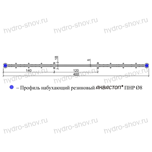 – для ххН: ПРОФИЛЬ НАБУХАЮЩИЙ РЕЗИНОВЫЙ АКВАСТОП® ЭКОНОМ (цвет – синий) ПНР ∅ 8